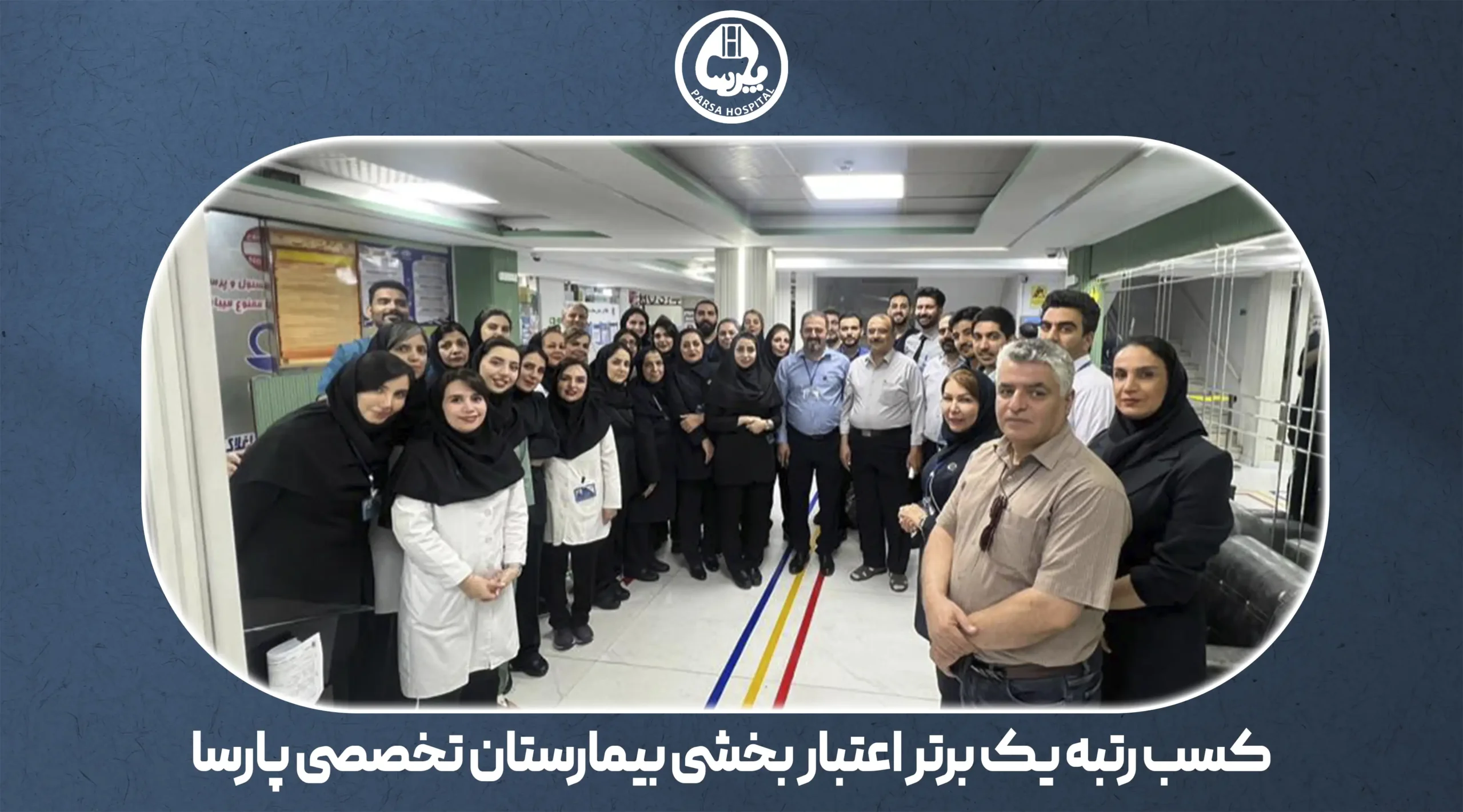 با افتخار به اطلاع میرسانیم بیمارستان تخصصی پارسا، در سایه تعهد و تخصص کادر درمان و تلاشهای بیوقفه تمام کارکنان، موفق به کسب «رتبه یک برتر» در اعتباربخشی ملی بیمارستان های کشور گردیده است. این موفقیت ارزشمند که نشانگر انطباق کامل با بالاترین استانداردهای کیفیت و ایمنی خدمات سلامت است، برگ زرین دیگری بر افتخارات خانواده بزرگ پارسا میافزاید.